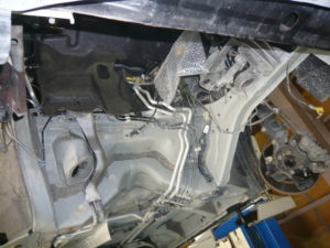 サスペンションメンバー、触媒、ワイパーカバー、ドライブシャフト等外してエンジン本体を降ろします。